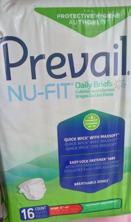 - Prevail® Nu-Fit® Adult Briefs offer maximum protection and comfort at a great everyday value Breathable Zones™ allow the skin to breathe Cloth-Like Outer Fabric is soft and comfortable Maximum absorbency for heavy bladder leakage. Available in size Medium $8
