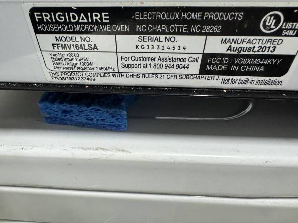 Frigidaire Over-the-Range Microwave with Exhust Fan Model FFMV164LSA (1.6 cu ft. 1,000 W. 30" wide - Excellent Condition $198.