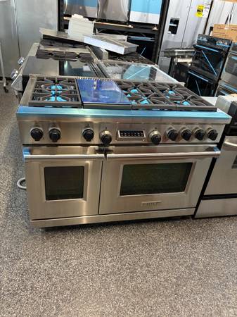Wolf Dual fuel range 6 burners with griddle Double oven Used fully working Message if interested 949—68 nine ——5001