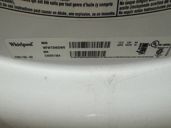 4- Whirlpool front load washer model WFW72HEDWO- It works but dose not spin fast enough. $198