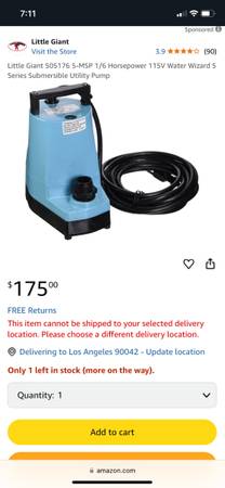 Little Giant 505176 5-MSP 1/6 Horsepower 115V Water Wizard 5 Series Submersible - $80 (South Pasadena)