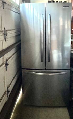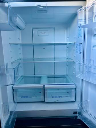 17.6 cu ft French Door Frigidaire Refrigerator. Counter Depth. Stainless steel. Ice Maker. Used for one week...too small for family. Documentation provided.