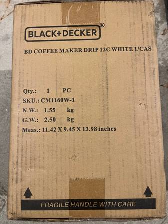 Black & Decker 12-Cup Coffee Maker — New in Box Price: $30 Description: Brand new Black & Decker CM1160W-1 12-cup programmable coffee maker. Still sealed in the original box — never used. •...