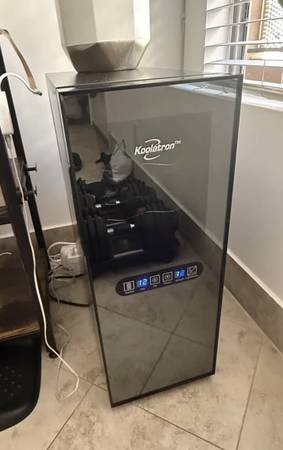 Koolatron wine fridge / beverage cooler with glass door and digital temperature controls (separate temperatures for upper and lower sections). Works great and looks sleek. Fully functional, no...