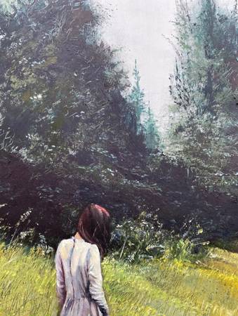 Painting of a girl walking through a summer meadow on professionally made cradled wood Panel.