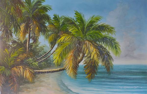 Tropical Beach Vintage Oil Painting