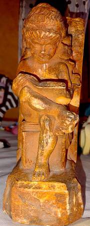 The pieces looks like it is a professor of sorts or perhaps a Cherub reading from a book but you may know more then I do.