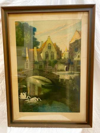 From Grammas collection of wall art, we have a lithograph, signed by the artist , numbered 16/200 in pencil along lower edge This professionally framed print is great for any room in your home or office. It has the feel of "I can relax. Everything is safe. All is well". Makes a perfect gift for any occasion.