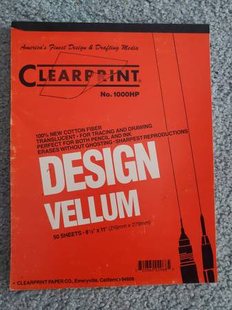 Clearprint 100% New Cotton Fiber Design Vellum Paper. Translucent. 44 sheets. 8.5 in x 11 in.