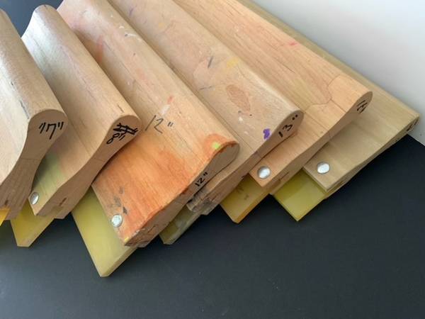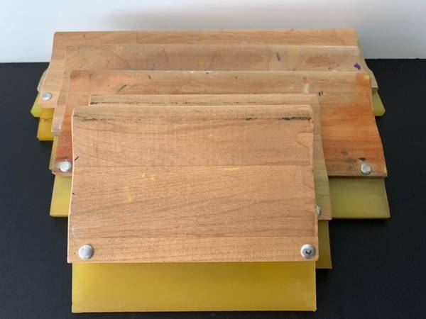 A set of 6 custom cut 70 Duro Squeegees for screen printing - all in excellent shape! I had them made shortly before shutting down my printing press. If you are into, or are going to be screen printing, you need these!