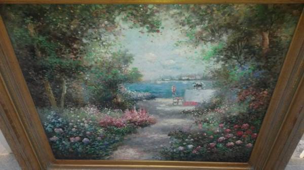 An original oil on canvas landscape painting by artist W. Eddie (Hong Kong, b. 1955). Known as a modern Impressionist painter, Eddie draws his inspiration from Monet and Renoir to fill his canvas with a tranquil palette of rich colors. The work is signed by the artist to the lower right and is presented in a carved gilt frame.