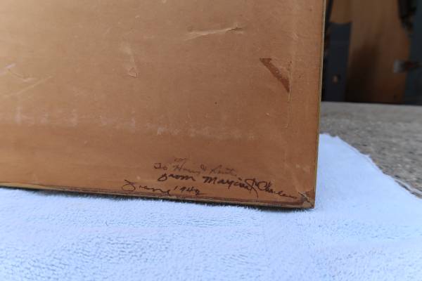 • There is no visible date but it's at least from the 1930's-early 40's although it could be older. There is a note on the bottom back corner noting the print being gifted to someone dated June, 1942.