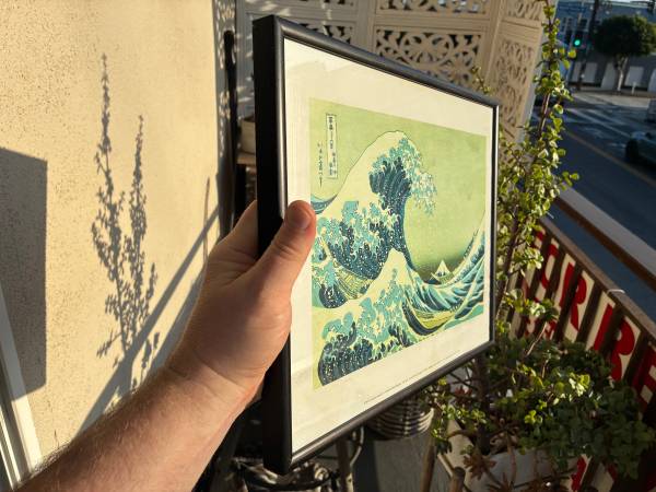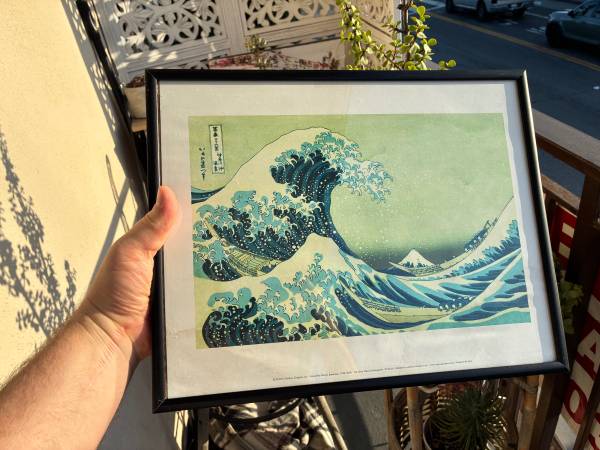 The Great Kanagawa Wave Framed Artwork 11.5” W by 14.5” metal & glass frame.