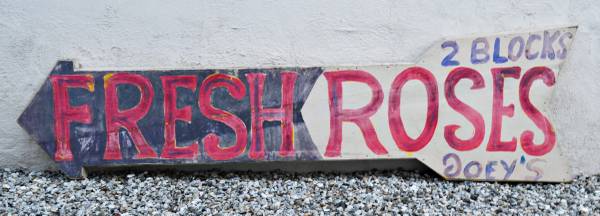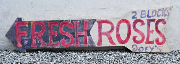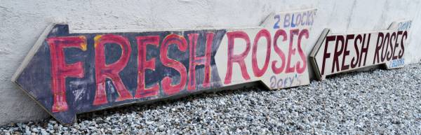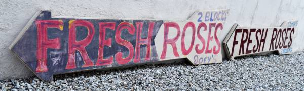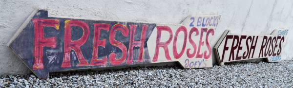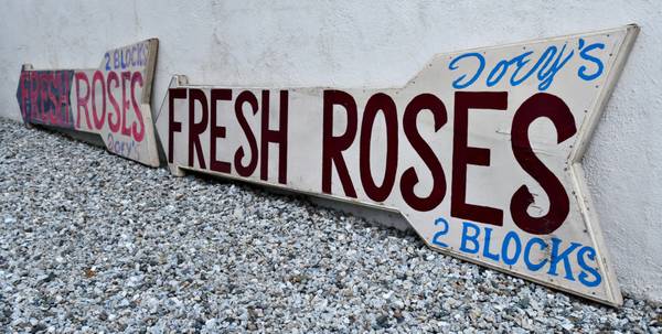 Authentic Americana Incredible Find Vintage Signs (Fresh Roses) Set of 2 Custom Handmade Made in California Circa 1970s All intact In good shape Some imperfections due to age 8'0'' Width x 2'3''...