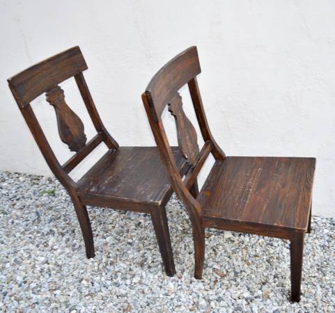 Set of 2 Solid Teak Chairs Queen Anne Style 38'' Height 19'' Seat Height 18'' Seat Deep 17'' Seat Width Handmade Slightly Different Solid Condition Original Patina Uneven Vintage Extremely Heavy...