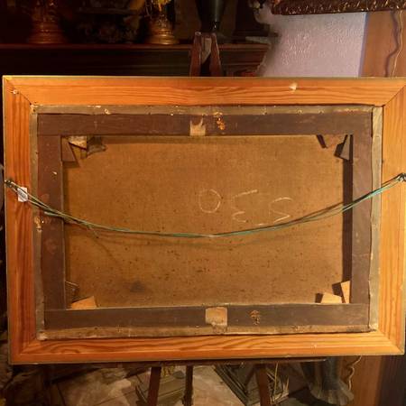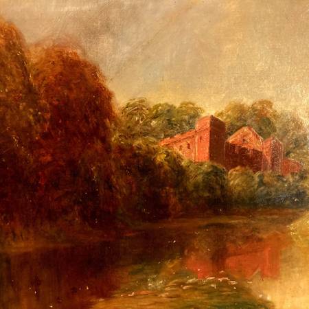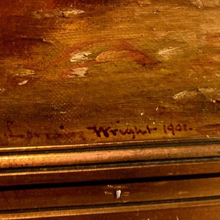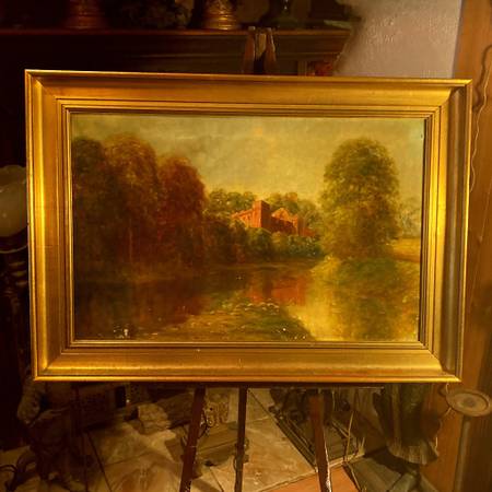 Beautiful 1901 Antique Oil Painting On Canvas signed Wright Landscape Castle River 28 inches x 20 inches framed