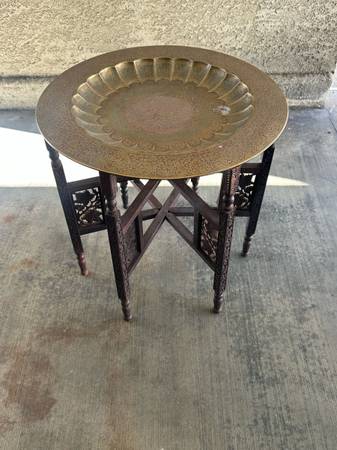 Indian Embossed Brass Collapsable Tray Table. If interested text me at
