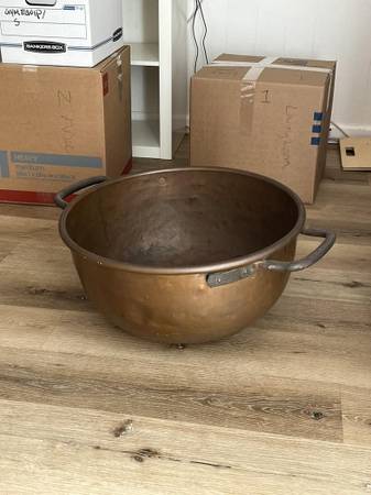 Step back in time with this traditional antique copper cauldron. Perfect for adding country charm to any kitchen and can be used as storage or a decorative object.