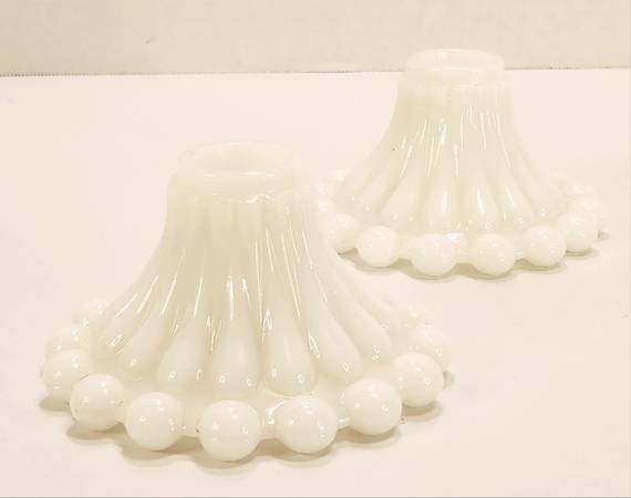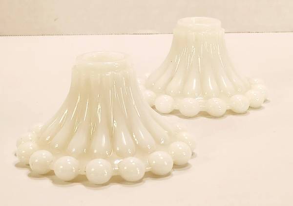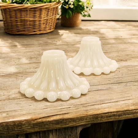 This vintage Anchor Hocking white Boopie milk glass candle holder showcases a classic farmhouse and cottage core decor style. Made in the United States during the mid-20th century, this decorative piece is suitable for taper/dinner candles and features a glossy finish with an opaque glass production style. The Boopie pattern and mid-century design make it a charming addition to any space, adding a touch of nostalgia to your decor.