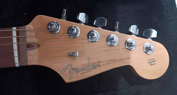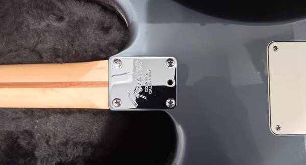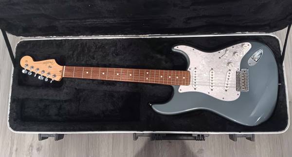 This is the Fender "American Standard" Stratocaster, made between 2008- 2012. It's a beautiful light "Charcoal Frost Metallic Blue" color, with a maple neck and a rosewood fretboard. It's in excellent condition with absolutely NO MARKS, NO SCRATCHES and NO DINGS on it anywhere. It comes with a TSA Approved hard travel case, that is very soft and luxurious inside. Also includes the "Whammy Bar" and a new set of strings.