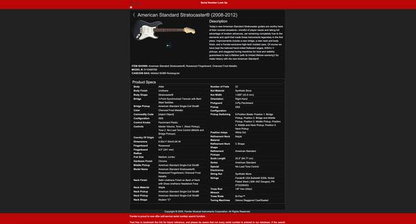 The guitar is in PERFECT CONDITION. It has been very well taken care of. The full description of the guitar (From Fender Serial Lookup) is on the last picture.