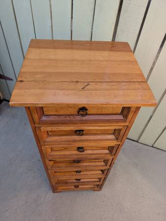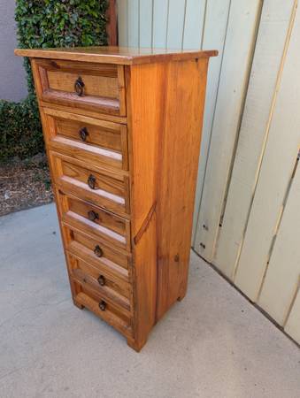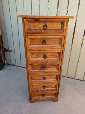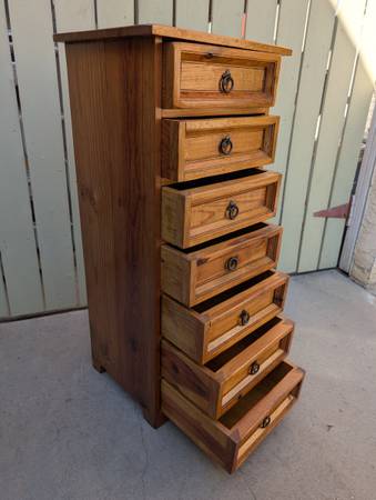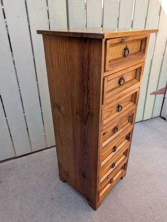 Pier One dresser of solid pine wood. Also called a lingerie chest with 7 drawers all the same size.
