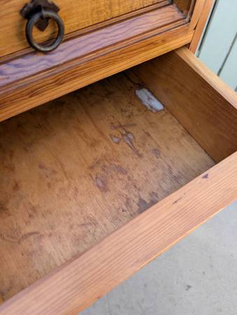 Excellent shape, except something stuck in one drawer (see last photo). Drawer paper will cover it right up.