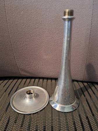 Antique aluminum monaural Pinard-style stethoscope used to monitor fetal heart sounds. Detachable by unscrewing the base. 5.75 inches high. Cash only