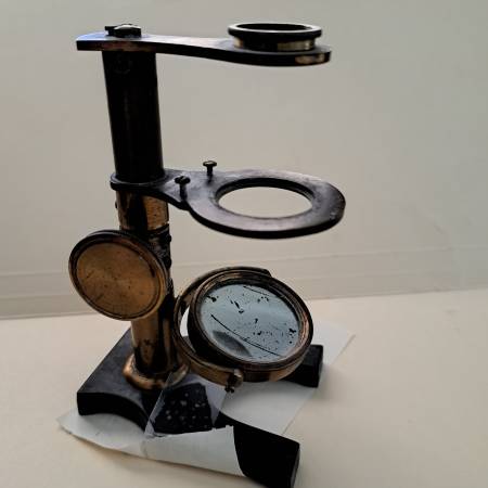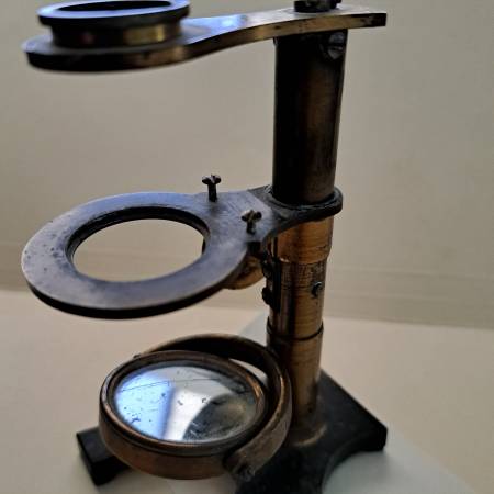 Antique brass simple microscope, 4.25 inches high. Cash only