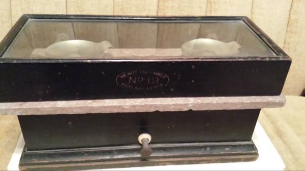 Antique pharmacy balance scale made by the Henry Troemner company in Philadelphia. The lid is glass, the platform of marble with 2 pans. The wooden base, which houses the scale mechanism, has Henry Troemner, No. 12, Philadelphia on the front. Cash only (no shipping)