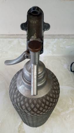 Antique Spritzer Seltzer Soda Bottle with Metal Mesh 1920-40 Art Deco