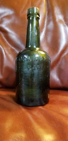 Antique empty bottle of the infamous Vin Mariani, touted as an energizing remedy. It had contained coca in wine. Vin Mariani embossed on the bottle. Cash only