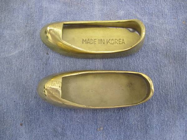 HEAVY BRASS KOREAN SLIPPERS PRE 1950. GOOD CONDITION. $50 OBO. PLEASE CALL/TX ROBERT