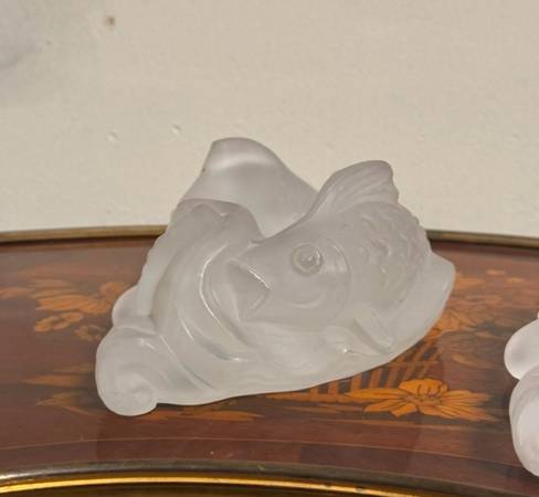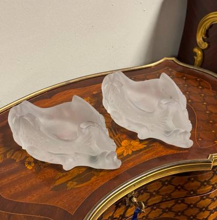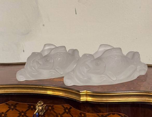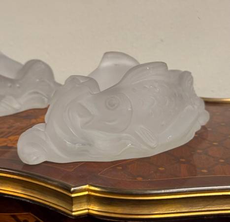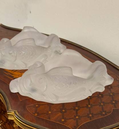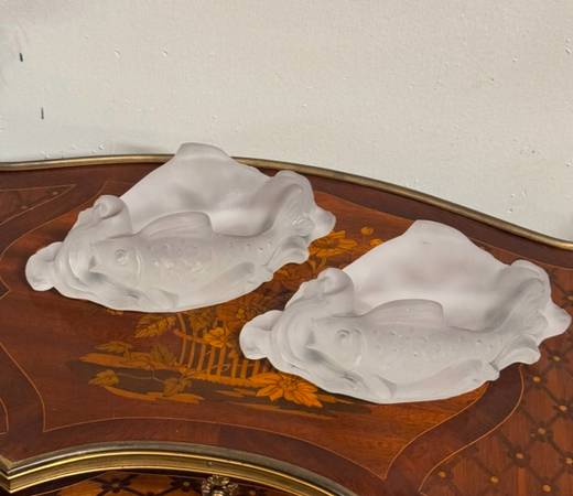 Lalique France French Art Glass Fish Bowls - Set of 2 Made of Frosted Art Glass Likely from the Art Deco period Each One Measures: 8”L x 4.5”W
