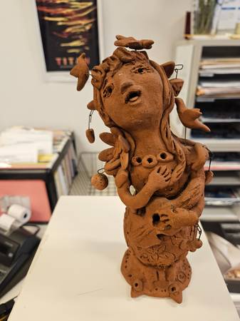 This unique signed piece is beautifully detailed and very unique. Not sure what part of Mexico this originates. It was purchased at an estate sale in Santa Monica from a well traveled lady. 8 high...