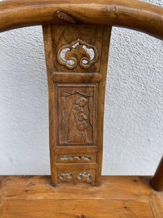 Chinese 19th C. Fabulous Carved Elm Wood Horseshoe Monk Chair - RLP...