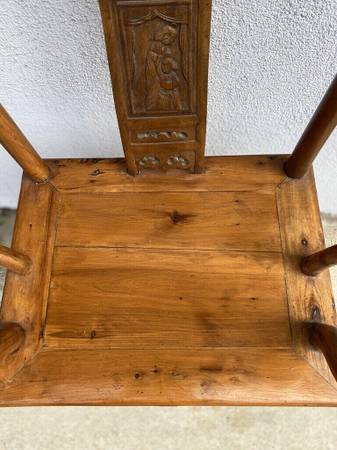 For more product and information visit: www.mygo2girl.com WILL CONSIDER REASONABLE OFFERS Gorgeous Antique Chinese Elm Wood Horseshoe Monk Chair 19.5 x 34.5 x 16.75 - SH 18.625 SD 13 In excellent...