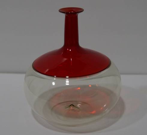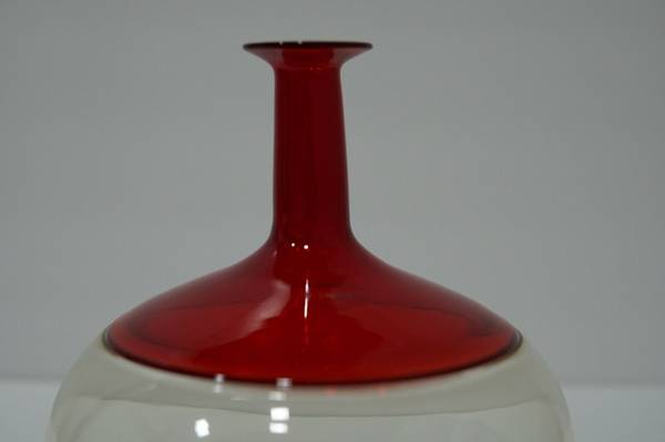 “A vase, a bottle. Red and sheer Straw Yellow. Two distinct spaces of colour created by Tapio Wirkkala that blend together thanks to the "Incalmo" technique, a process by which two pieces of blown glass are melted together.”