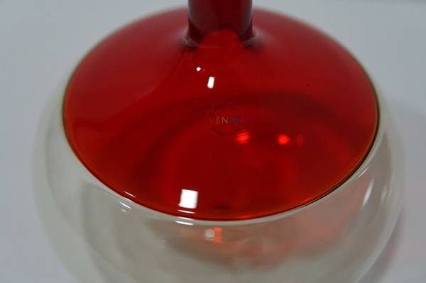 This vase was crafted in 2015 in the Venini glass factory in Murano, Italy.