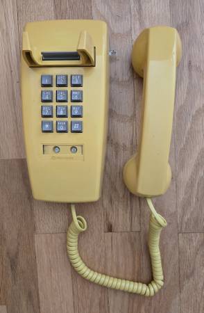 Western Electric yellow wall mount touch tone telephone (bell ringer).