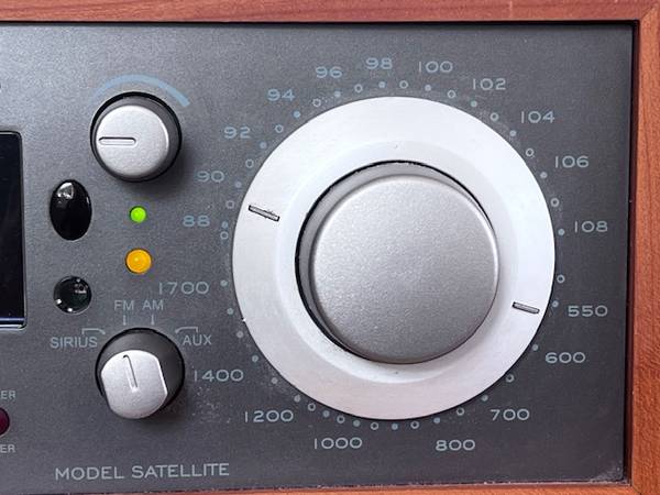 The powerful AM and FM tuners can pull in even weak signals, and the large analog dial is geared down to a 5:1 ratio for more precise control. The 3" mono speaker handles highs, mids, and lows with ease. The crisp, rich sound has to be heard to be believed — and you can connect a Model Subwoofer to make it even deeper and fuller. Encased in a cherry wood cabinet, the Model Satellite adds an elegant look to any décor.