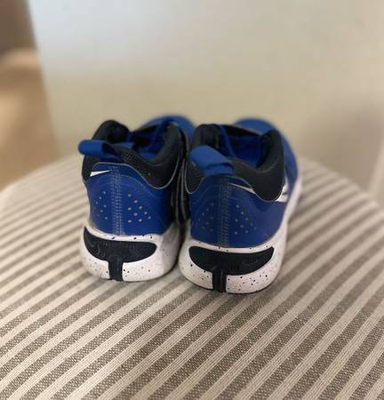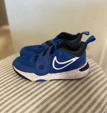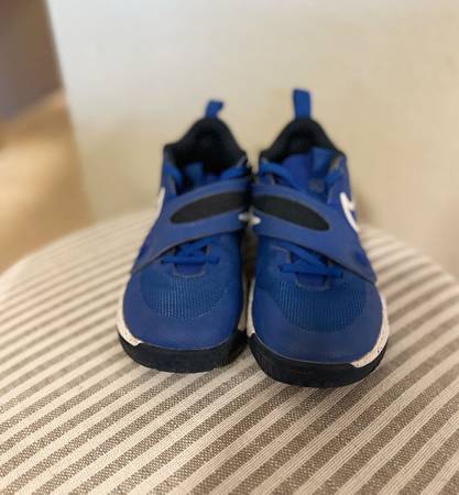 My son grew out of his size 2's and 3's quickly without having the opportunity to wear many of them. These Nike Team Hustle D 10's were such a cool pair of shoes that got very little wear. They are designed for comfort durability and support- perfect for school, play or beginner basketball. They've been gently used as mentioned but are in great condition with maybe 7 wears in them. No major scuffs, rips and perfect condition on the velcro and strap. They are in a royal blue/white. Easy for kids to put on and take off.