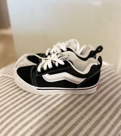 My son has grown out of all of his size 2's without having the opportunity to wear many of his shoes. These Vans Knu Skool shoes were very exciting in store and for some reason were only worn about twice with no park wear and tear, and went back in the closet. The thick tongue and chunky design offers a cool, retro vibe with a modern edge. They are beyond comfortable from the feedback I received. They are like new.