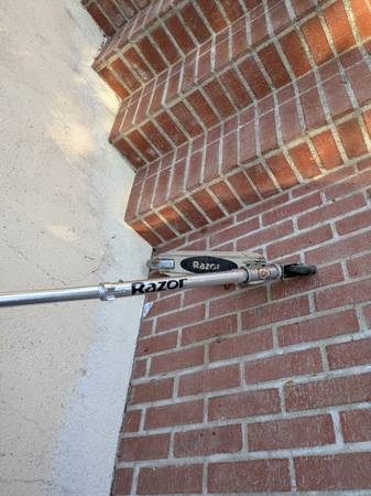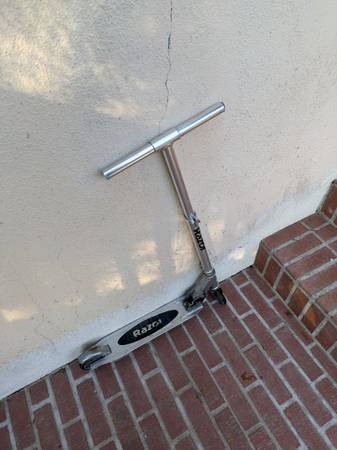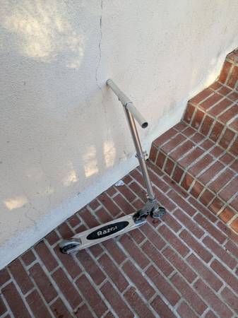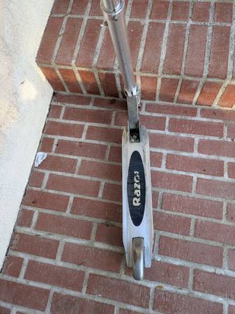 Kids Razor Scooter. Ok condition. Missing the handle padding and it's beat up. Doesn't fold down anymore. Wheels and breaks still work.