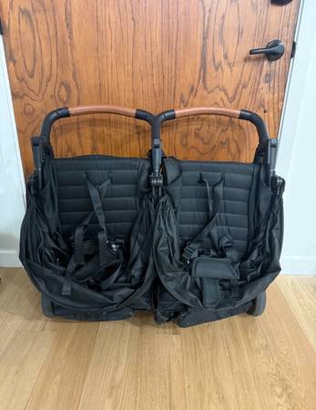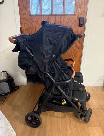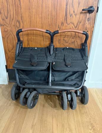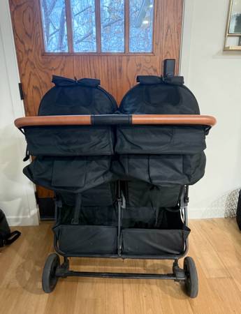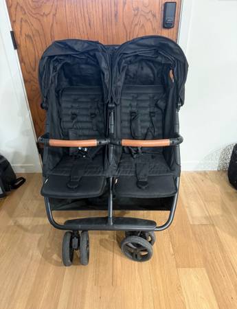 barely used zoe twin v2 stroller in black. comes with the all-terrain wheels & double stroller organizer. bought in 2024 for over $650.