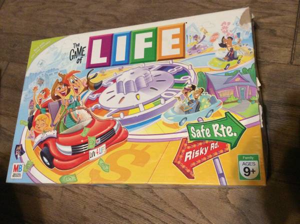 The game is in good condition. However, it is missing one car, a couple of "Life" cards and a couple of "Spin to Win" tokens. The box has slight damage to one corner.