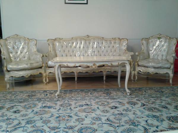 - Classic Italian real white wood Furniture covered with custom tailored plastic cover being protected for only $1500