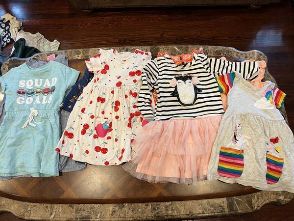 Sizes 4T and 5T, Bundle of almost 50 dresses with a balanced mix of casual and formal styles. Great for school, outings, holidays, and special events. All in great condition and sold as one full...