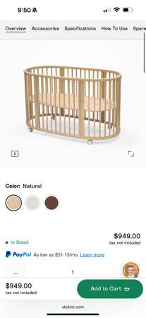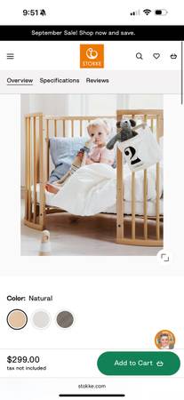 Stokke Sleepi Crib + Convertible Bed Extension Kit (converting it to toddler bed) + crib mattress + toddler bed mattress all in excellent condition. Mattresses always protected with waterproof mattress covers. This set got us from newborn through 4 years old. Will sell components separately if necessary.
