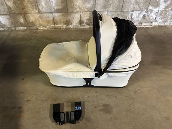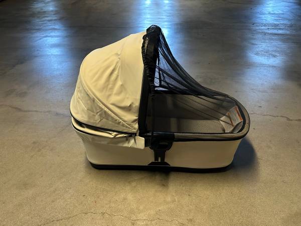 Bassinet for Thule Urban Glide 3. Includes bassinet ($300), Thule but net/shade ($60), and jogger to bassinet adapters ($50). We used in for 6 months and our baby loved it — was able to roll around, nap, and stretch out while we walked or went to lunch. We love running with our Urban Glide 3 now, but being able to stroll baby in smooth comfort for those first months was totally worth it — highly recommend if you have an Urban Glide 3.